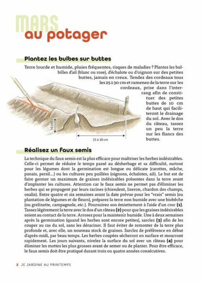 Plus de 260 conseils détaillés et originaux de printemps sont regroupés ici, dans un seul ouvrage : réaliser un faux semis, fabriquer une « planche à tasser », aménager une serre bioclimatique, accueillir les hérissons, entretenir le figuier, marcotter les rosiers, repiquer des onagres, préserver la cétoine dorée, faire grimper les concombres, etc.